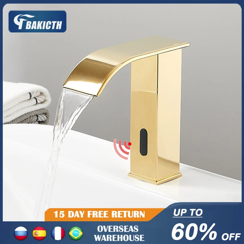 Черный смеситель для ванной комнаты Bakicth, автоматический сенсорный кран для раковины в ванной комнате с бесплатным сенсорным датчиком