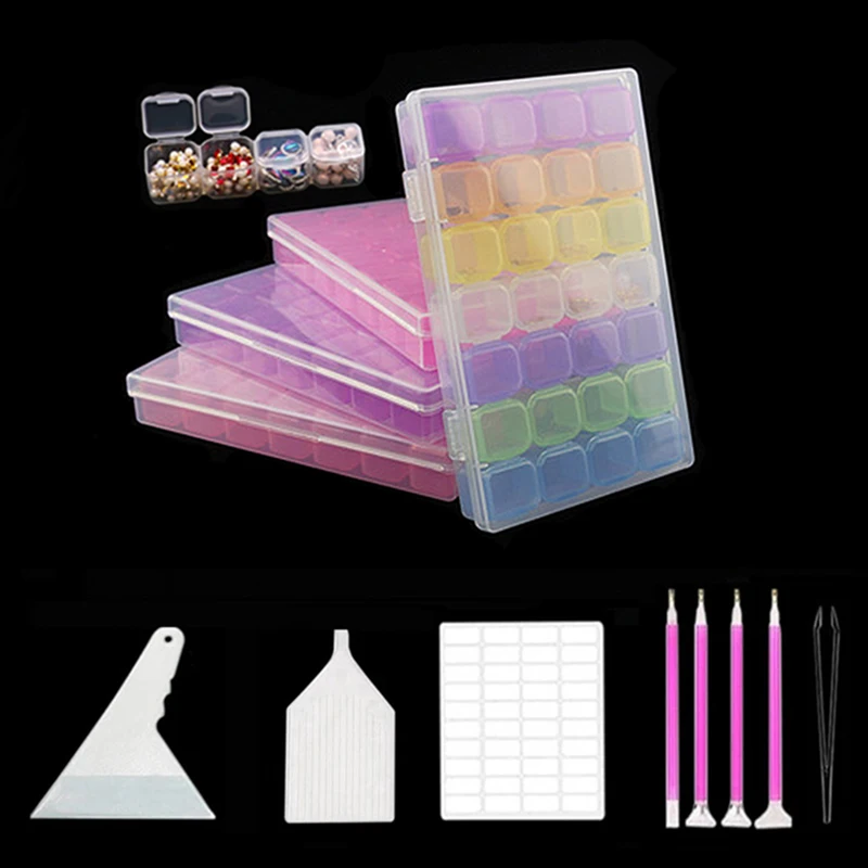 Наборы инструментов для алмазной живописи, 28 ячеек, пластиковый ящ...