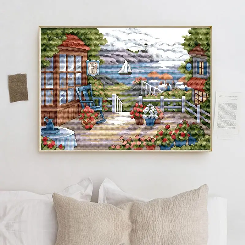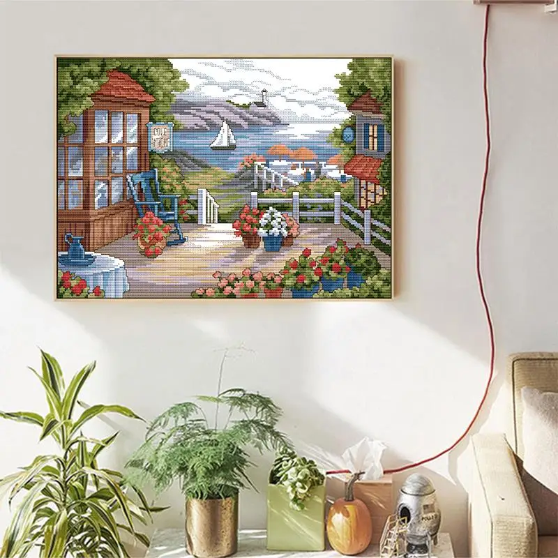 Наборы для вышивки крестиком на террасе с цветами Aida 14CT 11CT, Набор для вышивки вышивкой, картина для украшения дома