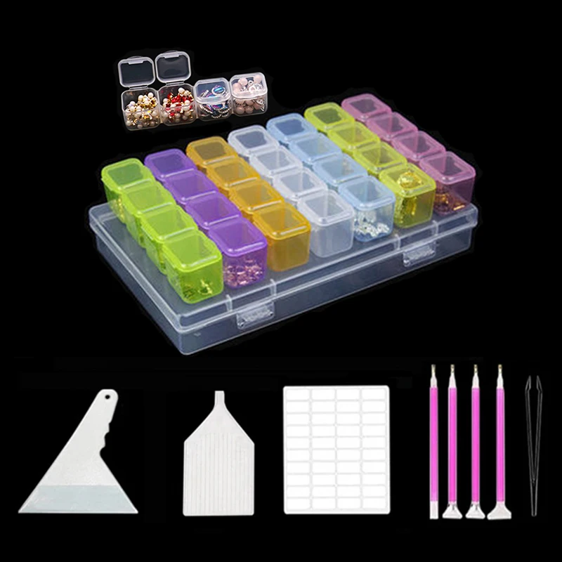 Наборы инструментов для алмазной живописи, 28 ячеек, пластиковый ящ...