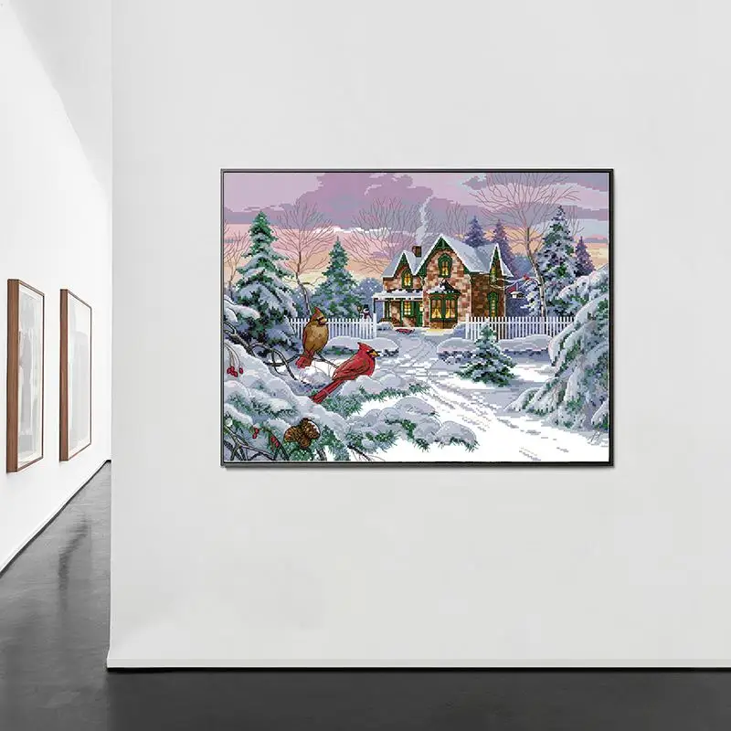 Зимний Набор для вышивки крестиком птицы дома Aida 14CT 11CT, Набор...