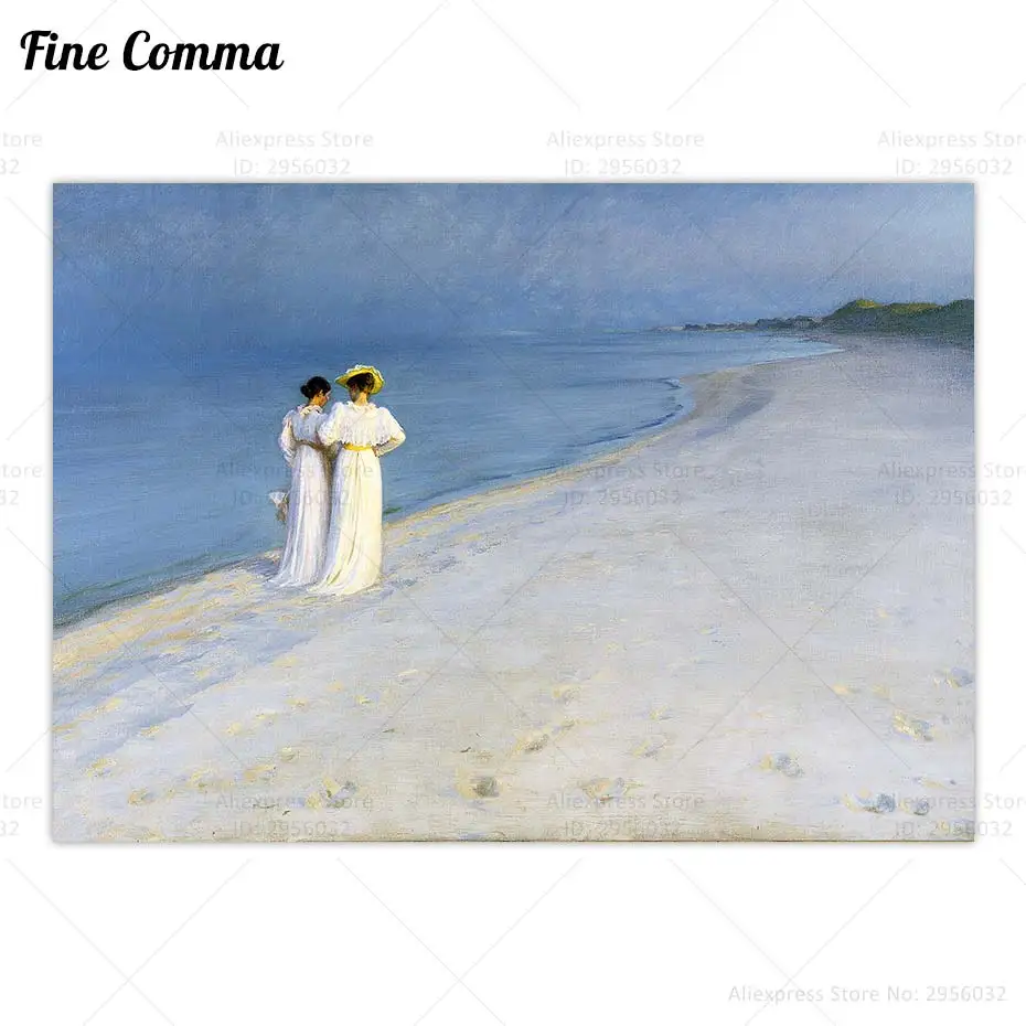 Летний вечер на южном пляже Скагена, винтажный постер, Педер Северин кройер, картина маслом, репродукция, печать на холсте, настенная живопись
