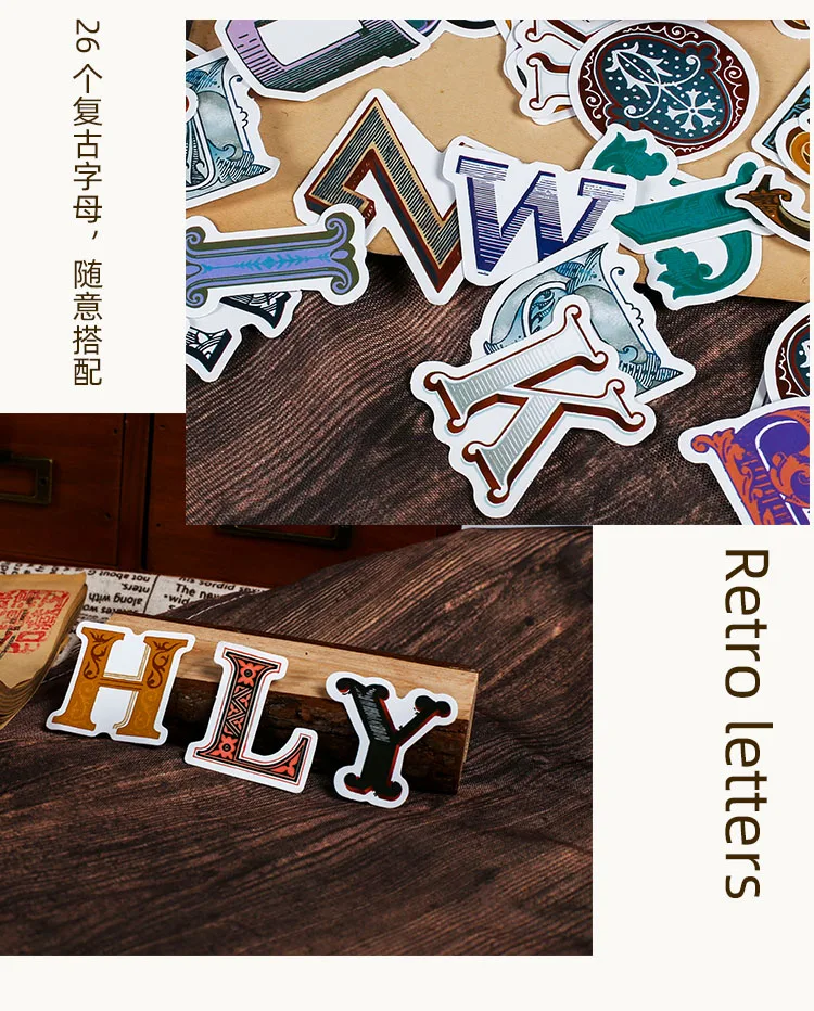 52 шт. Набор наклеек с английским алфавитом в винтажном стиле, деко...