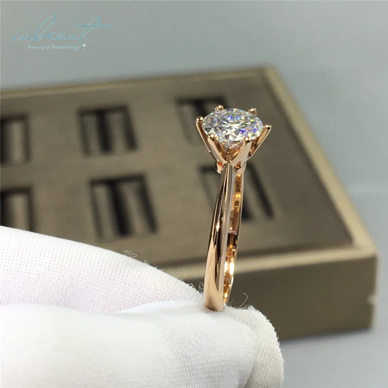 Круглое Сверкающее кольцо inbeaut с муассанитом, кольцо из 925 проб...