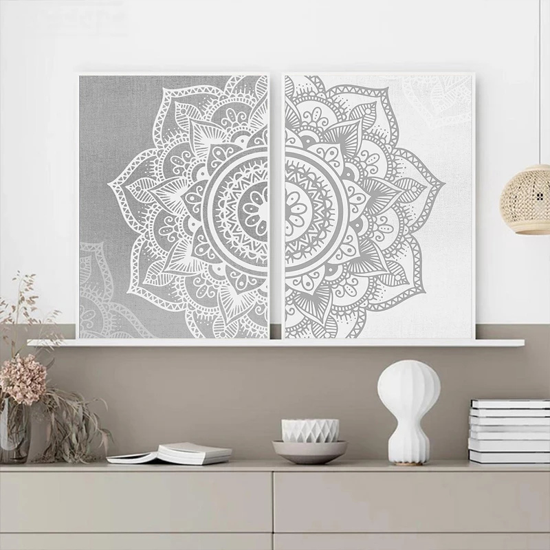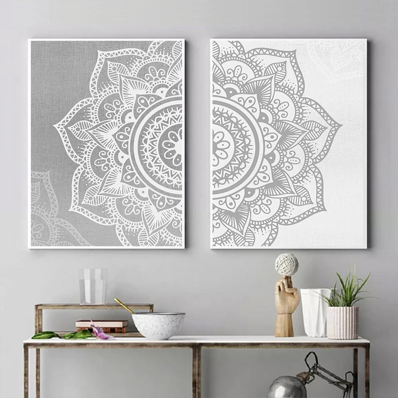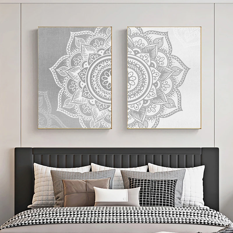 Богемный узор мандала, мусульманская Настенная картина, серый, белый холст, картина, постер, картина, Йога, гостиная, домашний декор интерьера
