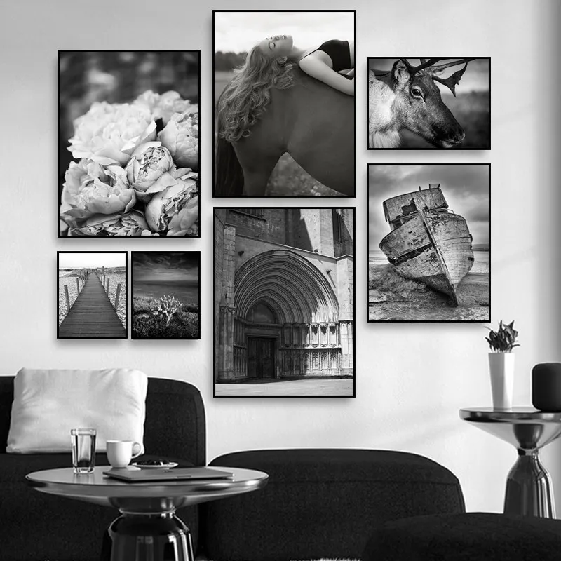Черно-белая пейзажная картина, животные, настенное искусство, холст, живопись, пейзаж, Постер и печать для скандинавской девушки, домашний декор HD0106