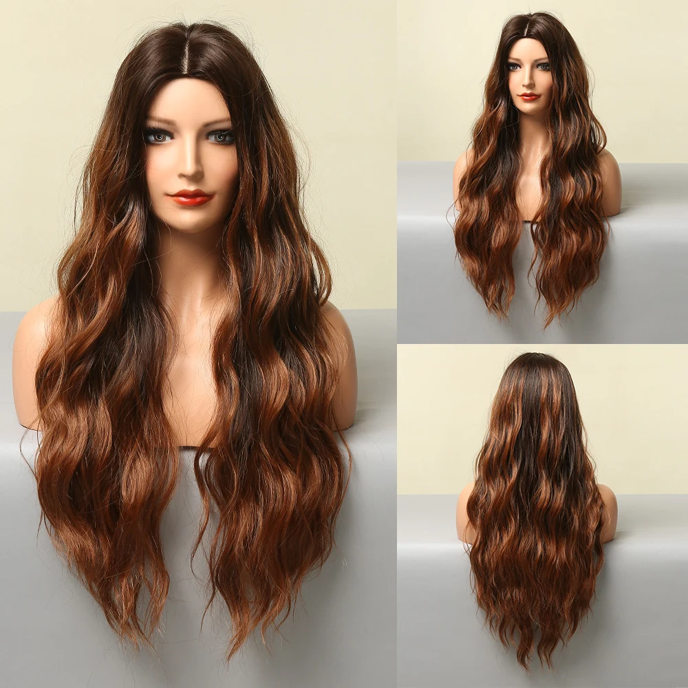 Длинные волнистые красно-коричневые синтетические парики с эффектом...