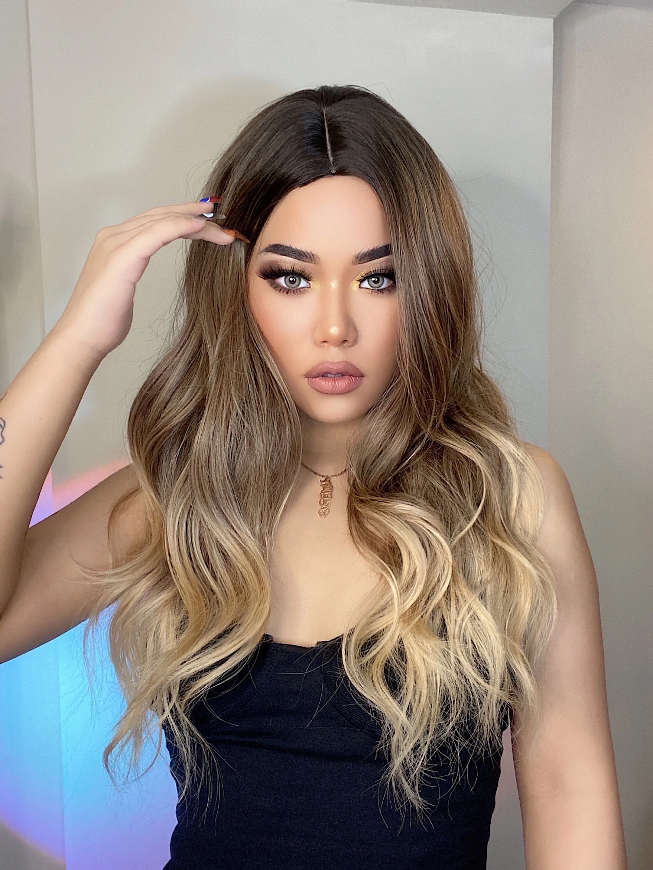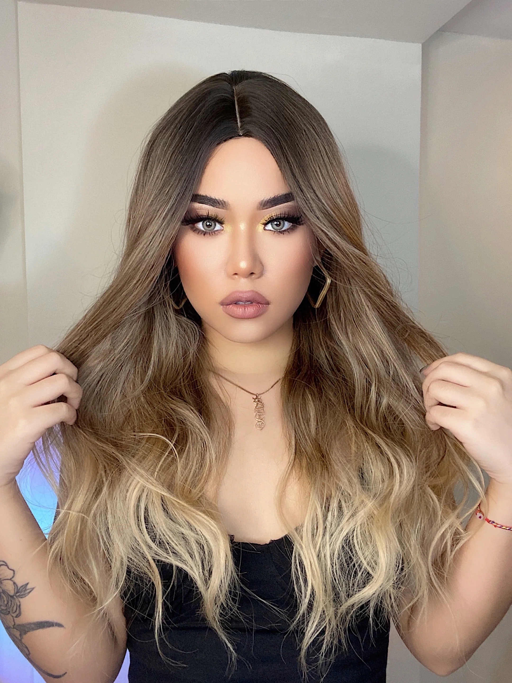 Парики из длинных синтетических волос с эффектом омбре, с челкой