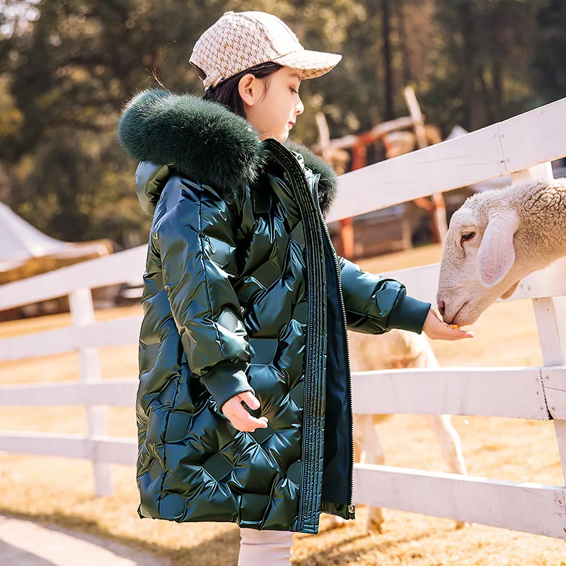 Новинка 2021 года, зимний детский плотный пуховик Модное Длинное пуховое пальто цвета шампанского для девочек, теплый и водонепроницаемый пуховик для девочек