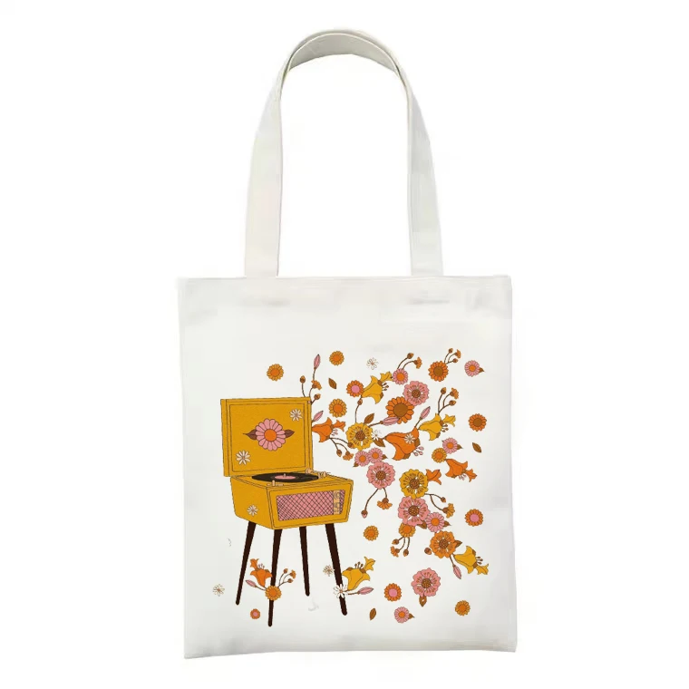 Холщовая Сумка-тоут с цветочным принтом, сумка для покупок в Корейс...