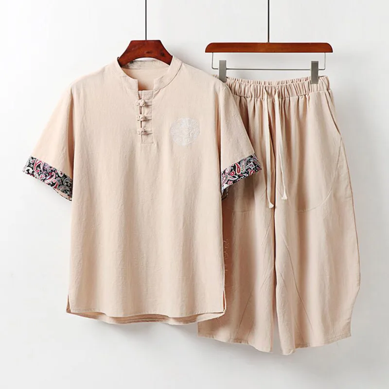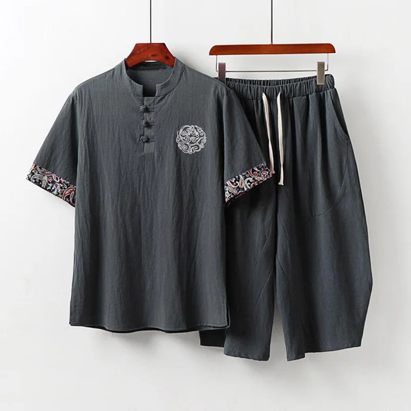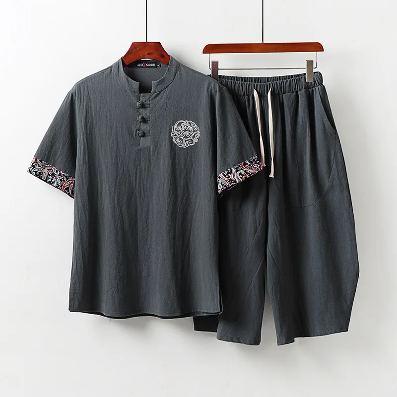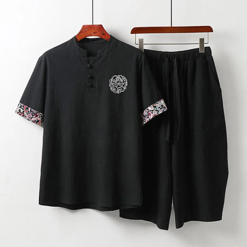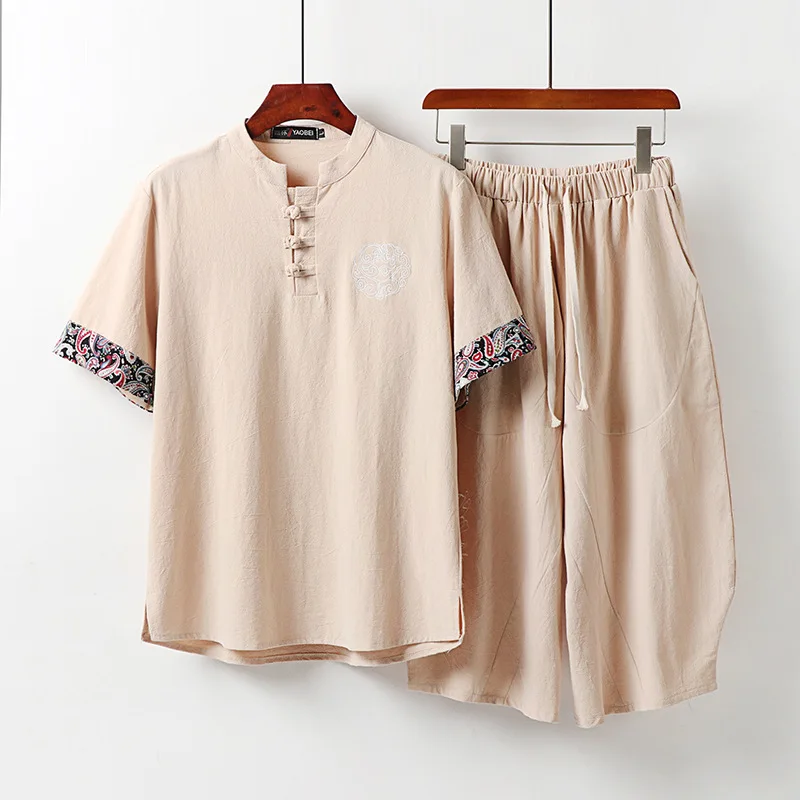 Мужской спортивный костюм большого размера, новинка, летний костюм для мужа, льняная футболка, модный мужской комплект в китайском стиле 5xl 8XL 9XL, комплект из двух предметов, 160 кг