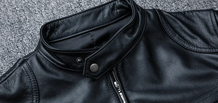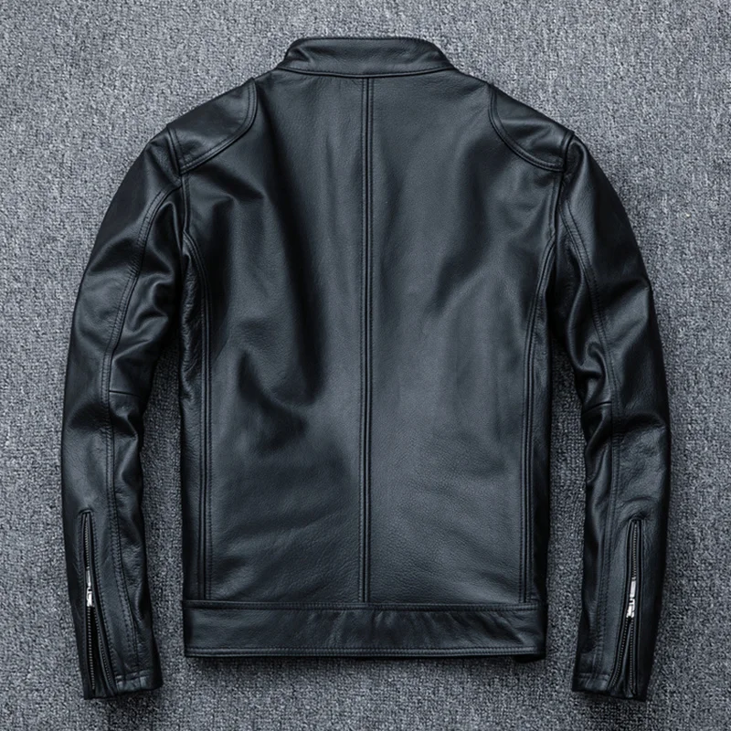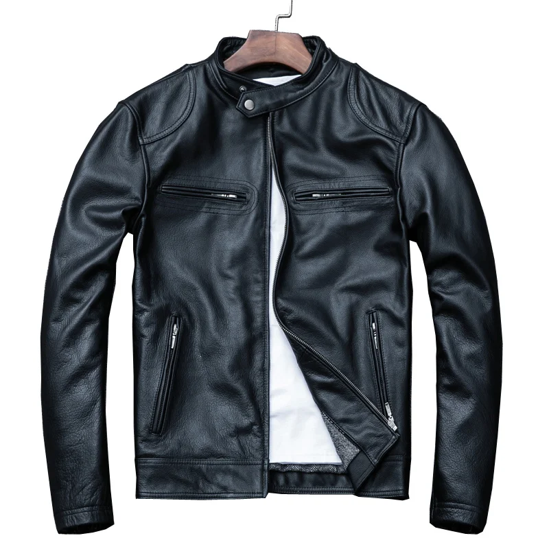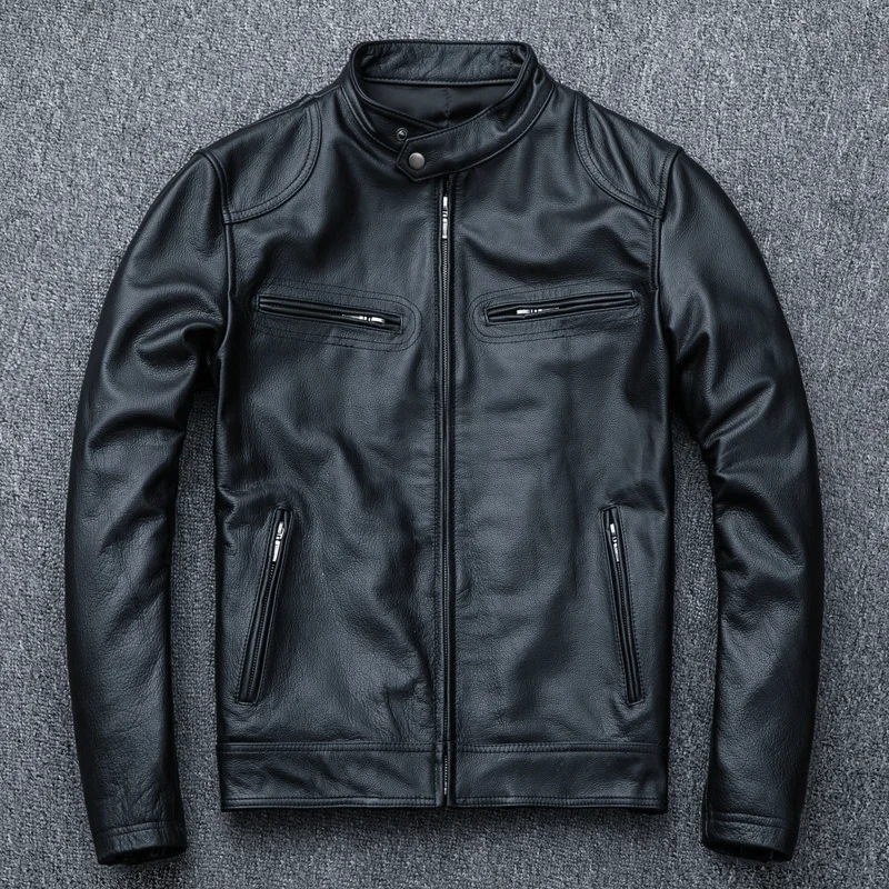 Куртка мужская короткая из натуральной кожи, мотоциклетный жакет из натуральной воловьей и овечьей шкуры, черный Байкерский стиль, на осеньзиму