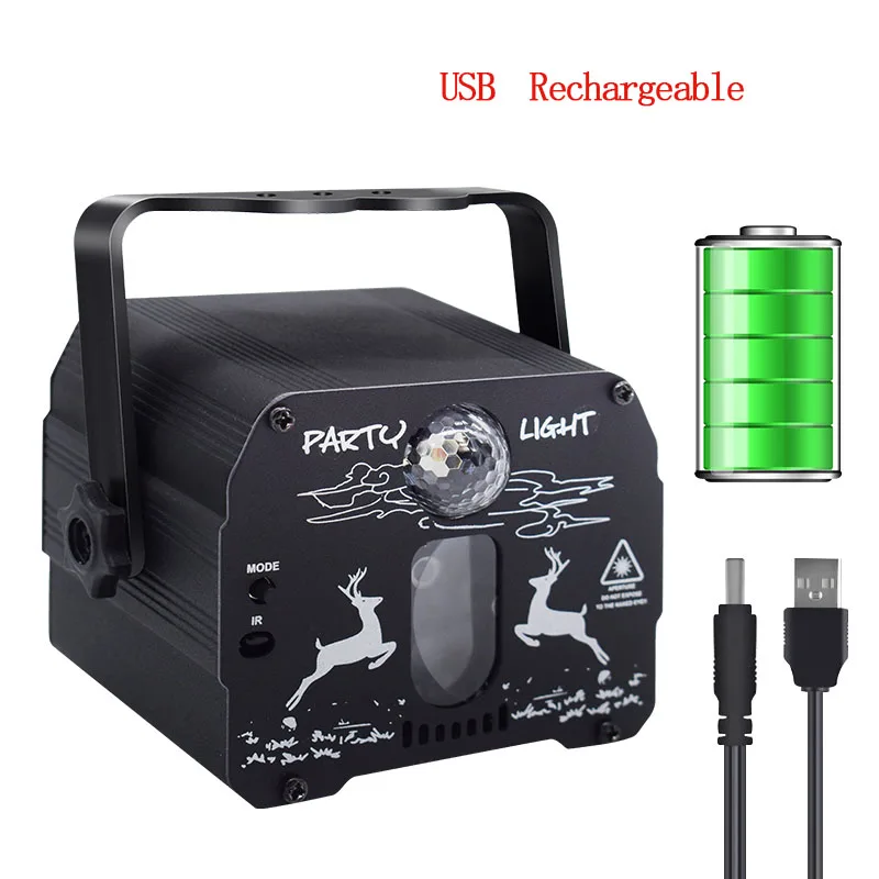 Светодиодный лазерный прожектор с 60128 узорами и зарядкой от USB