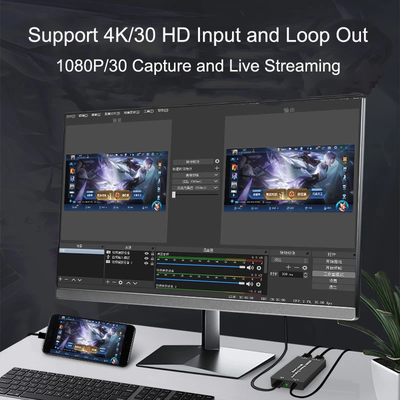 Карта видеозахвата 4K 1080P Loop HD, плата для записи игр, совместимая с HDMI, USB 2,0, живая трансляция для XBOX, PS4, переключатель, камера для ПК