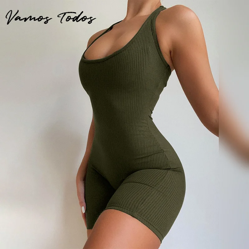 Vamos Todos 2021 летний базовый однотонный комбинезон для женщин короткий топ обтягивающие шорты женское облегающее боди Спортивное повседневное женское боди