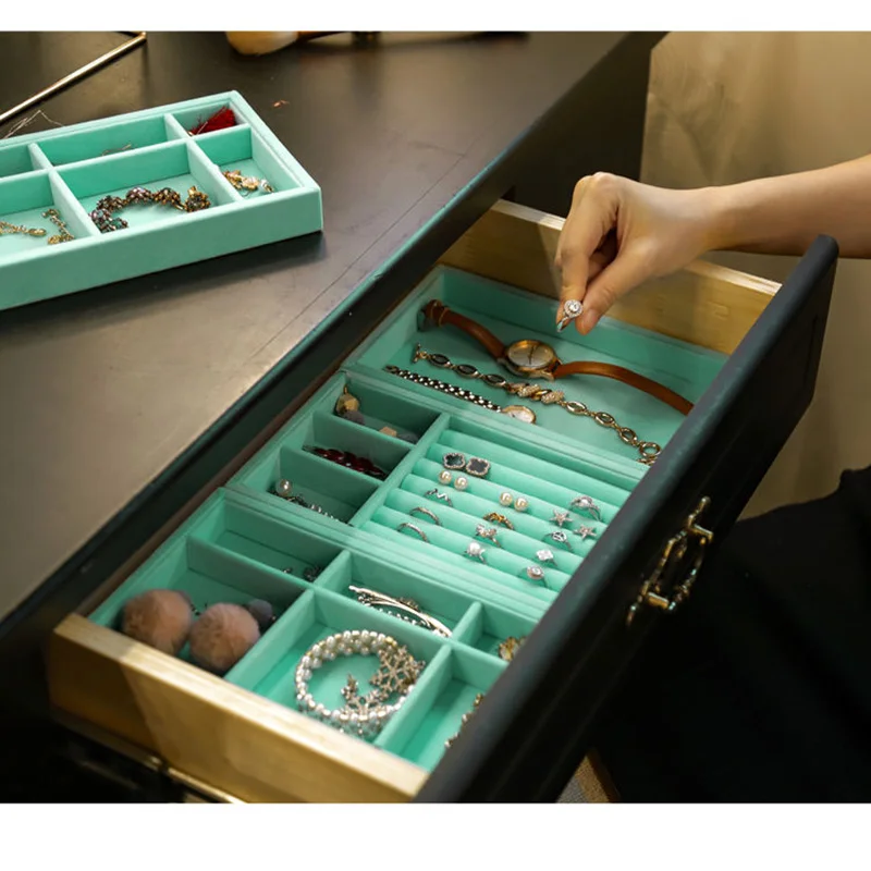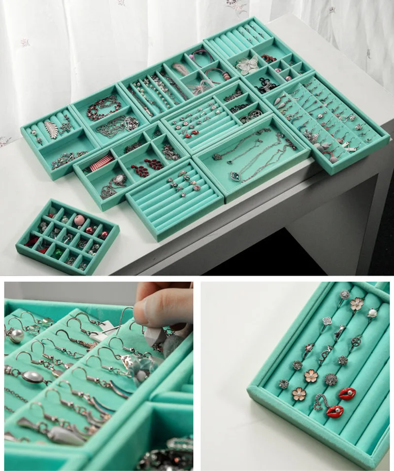 Органайзер для ювелирных изделий, Бархатный поднос для хранения ювелирных изделий, витрина для хранения кольца, браслета, ожерелья, ящика, органайзер, лотки