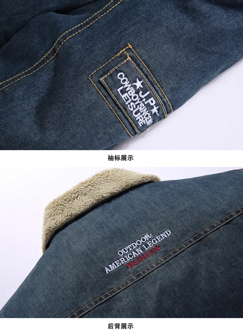 2021 зимняя флисовая хлопковая джинсовая куртка, Мужская ветровка, ...