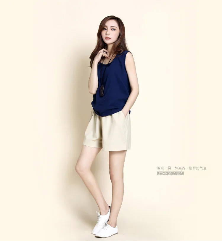 Шорты из хлопка и льна женские корейские Шорты повседневные эластич...