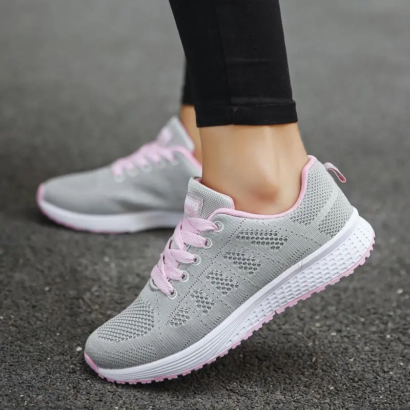 Летняя дышащая женская спортивная обувь, женские кроссовки, женская спортивная обувь для женщин, серые, розовые спортивные кроссовки, женская обувь