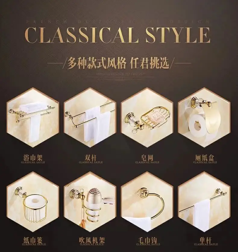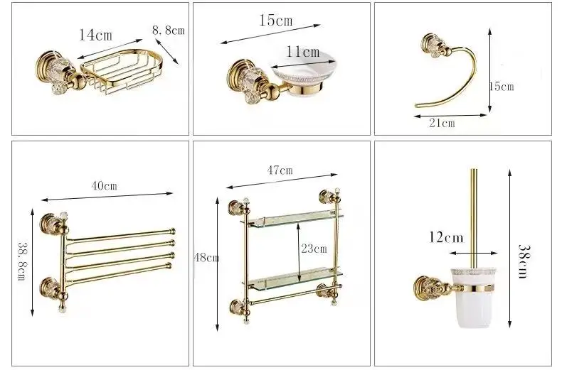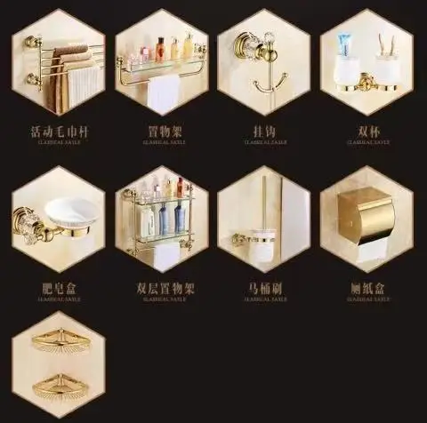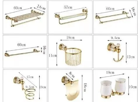Настенный Набор аксессуаров для ванной комнаты из латуни и кристалл...