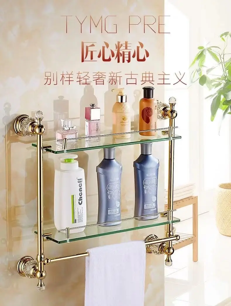 Хрустальная Золотая полка для ванной, стеклянная полка для ванной к...