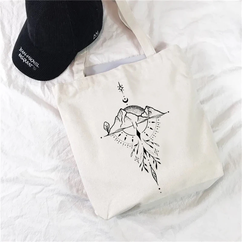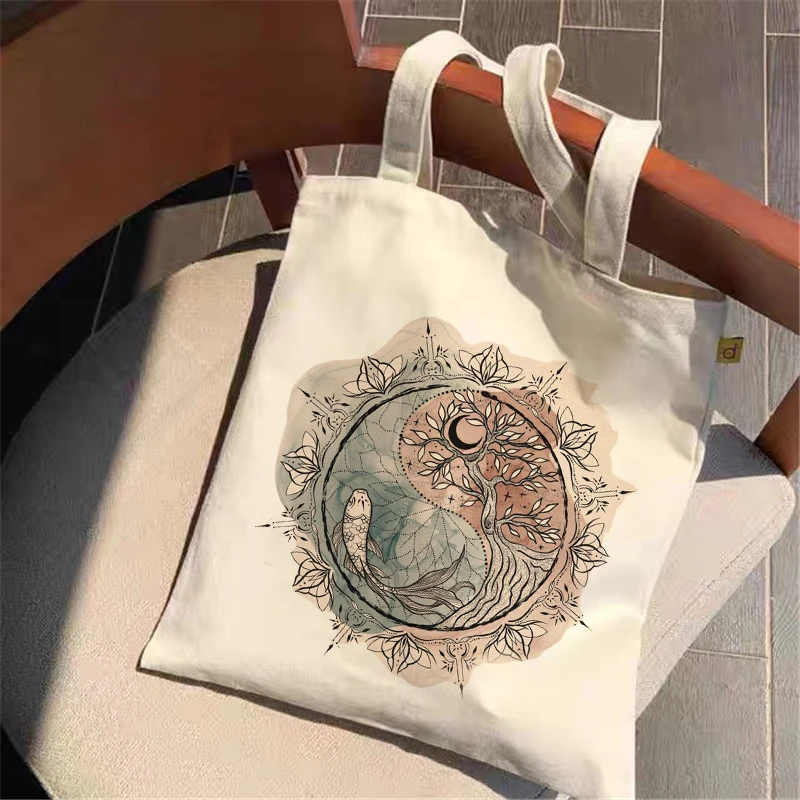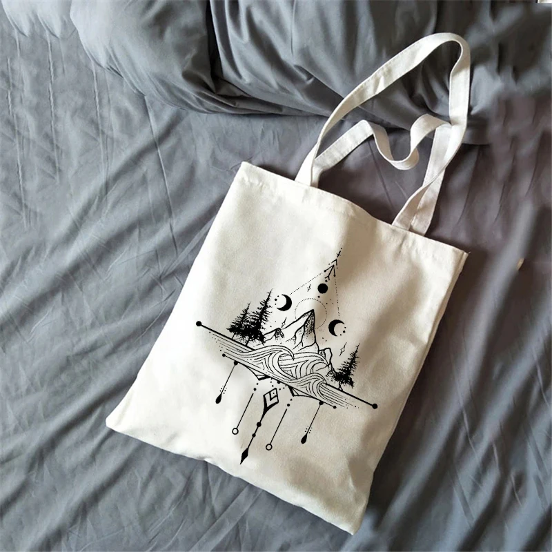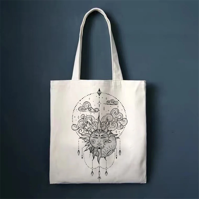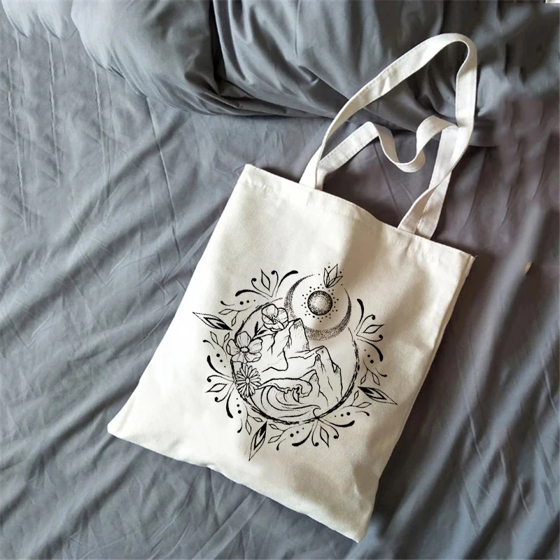 Холщовые сумки для покупок 2021sun and Moon, с принтом цветов, боль...