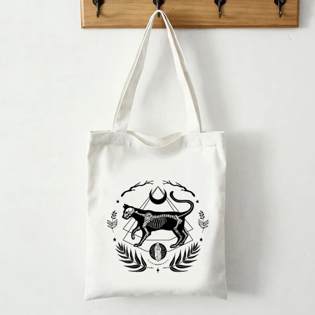 Холщовая Сумка в готическом стиле с принтом черепа и букв, женская ...