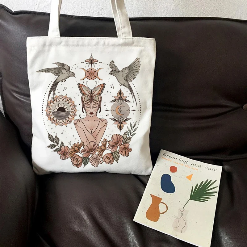 Холщовая Сумка в готическом стиле с бабочками, повседневная сумочка...