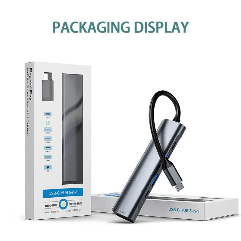 Ультратонкий 5-портовый USB-концентратор 3,0, высокоскоростной адаптер для компьютера, ноутбука, настольного ПК