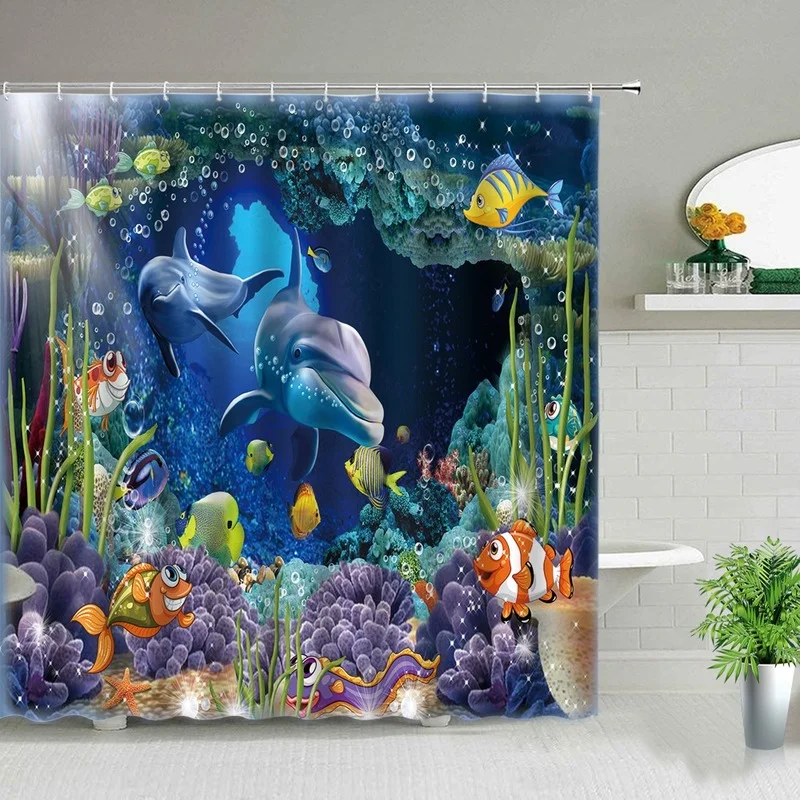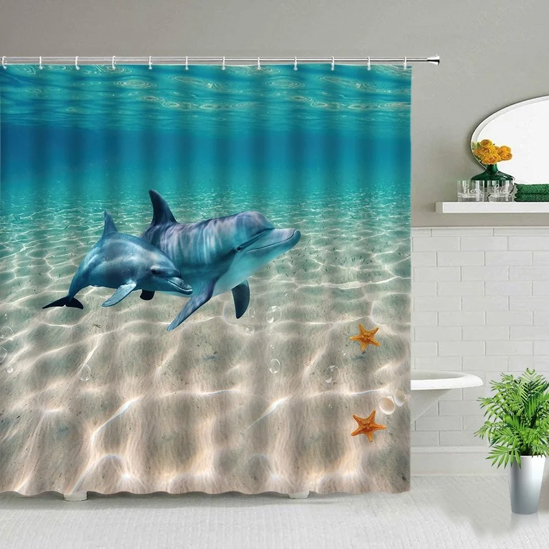 Занавеска для душа в виде дельфина, Симпатичные морские животные, с...