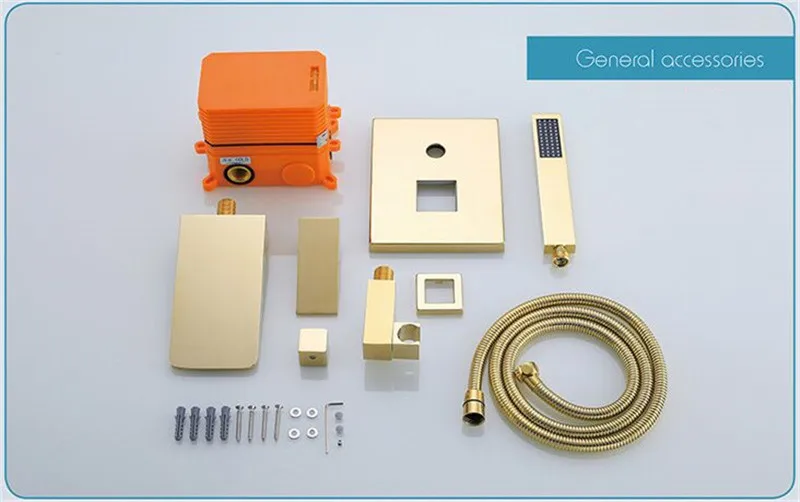 Золотой Набор смесителей для ванны и душа, Твердый латунный кран для ванны, настенный смеситель для ванны с ручным водопадом, кран для ванны