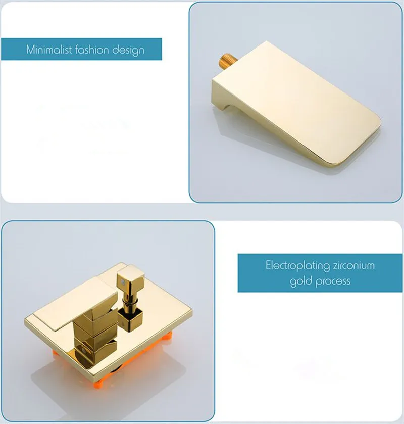 Набор золотого смесителя для ванны и душа, однотонный латунный Смеситель для ванны, настенный смеситель для ванны с ручным краном Водопад для ванны