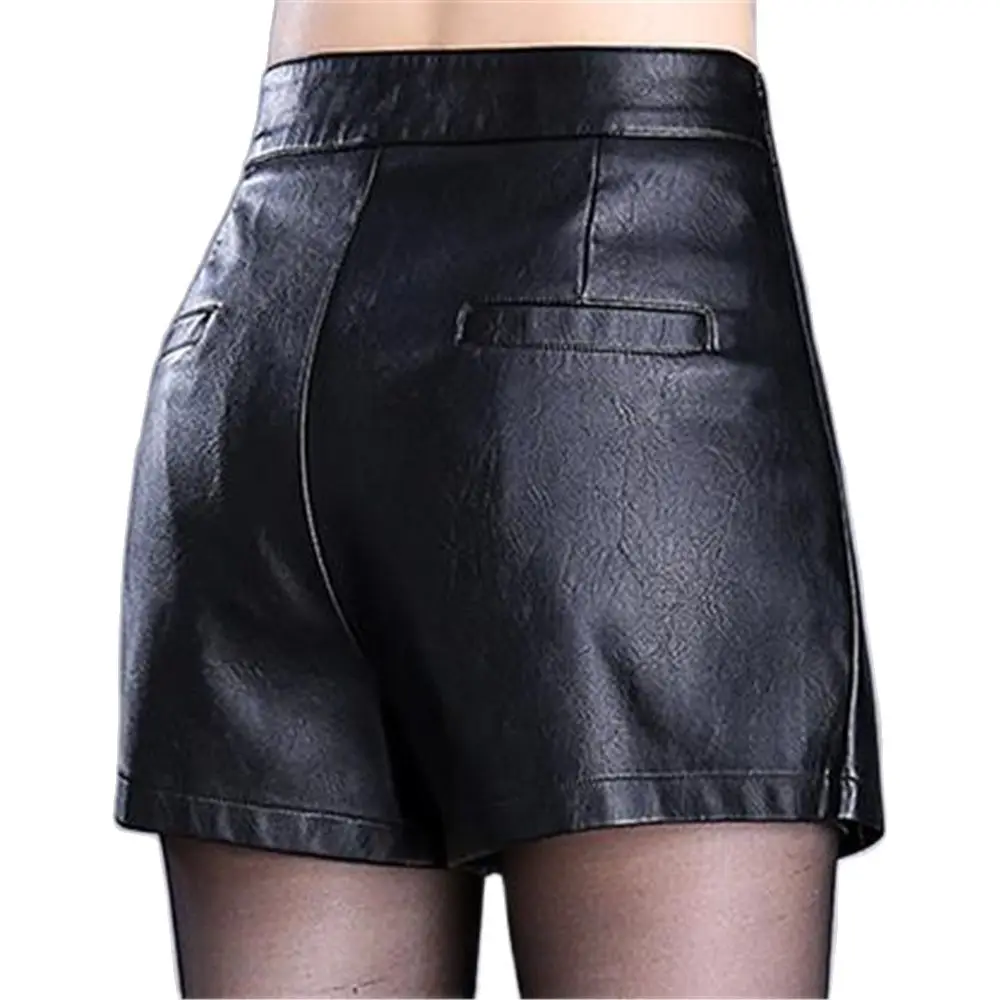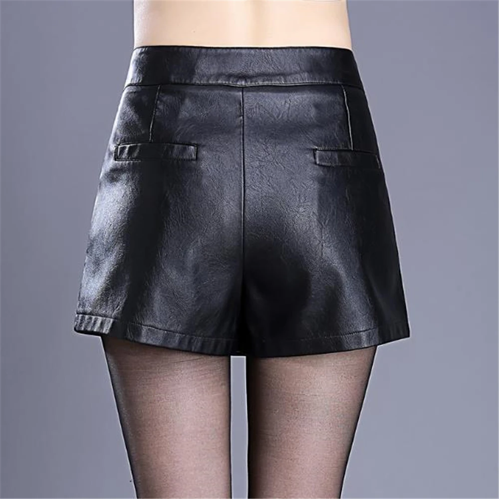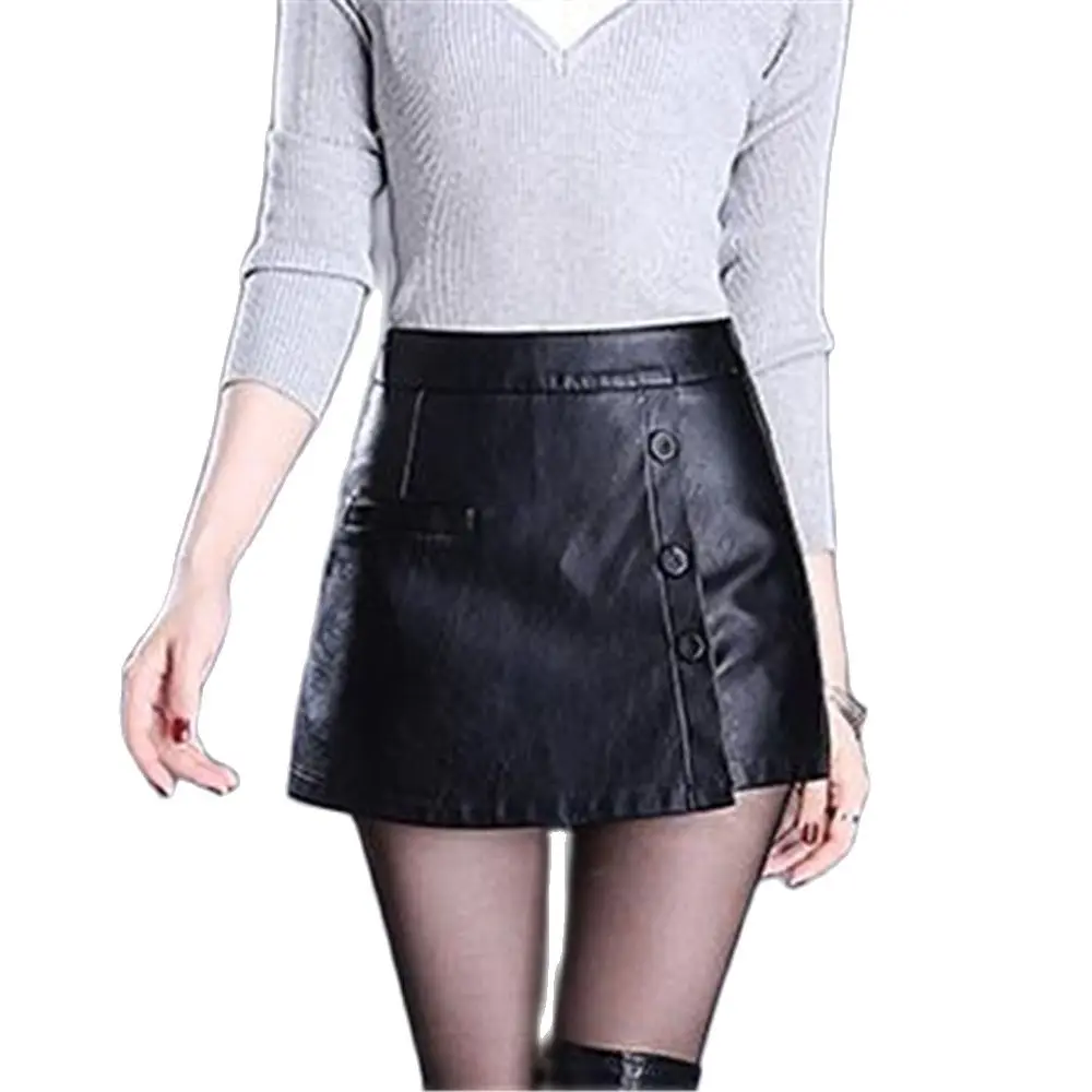Женские весенние юбки выше колена, Женская Осенняя черная кожаная юбка большого размера, женские зимние свободные кожаные шорты на пуговицах