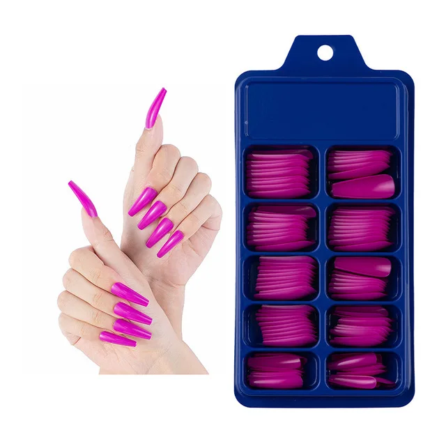 100 шт. в блистерной коробке с однотонными заостренными накладными ногтями наклейки длинные балерины карамельных цветов красный синий розовый желтый накладные ногти