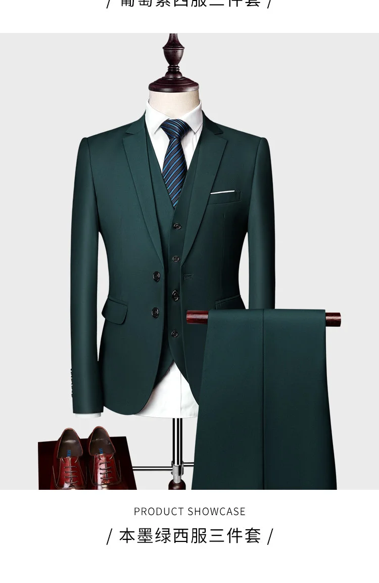 (Пиджак + брюки + жилет) 2021 Новинка для жениха цвет зеленый облег...