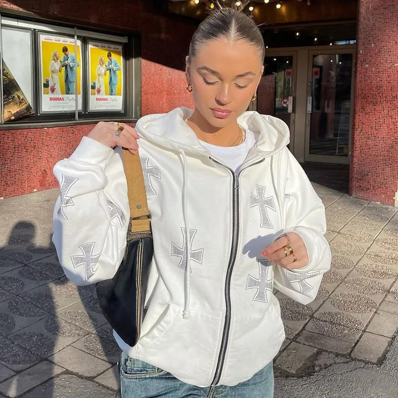 Стразы 2021 летняя толстовка на молнии с капюшоном в стиле аниме в эстетике гранж уличная одежда женские толстовки в стиле кибер Y2k толстовки