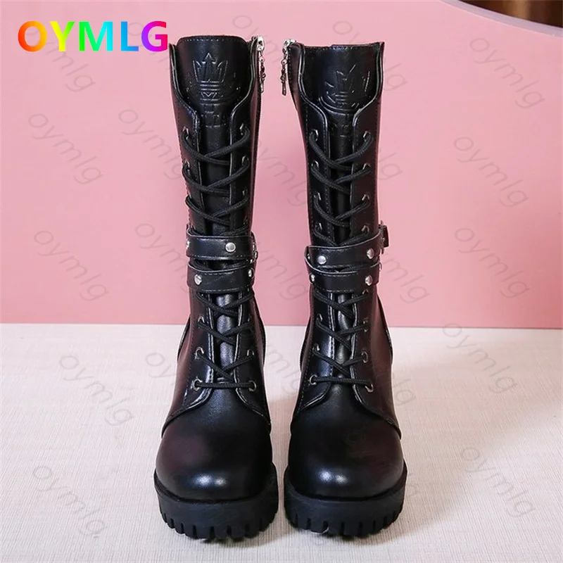 Женские армейские сапоги на высокой платформе, черные кожаные сапог...