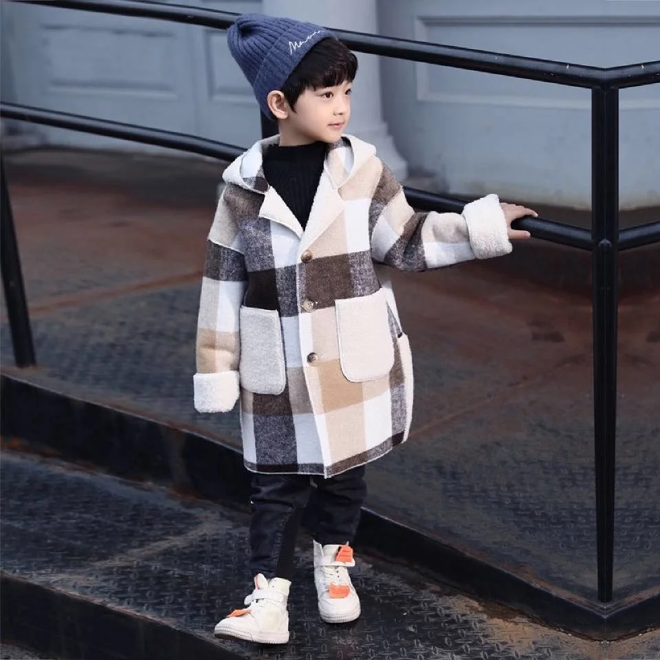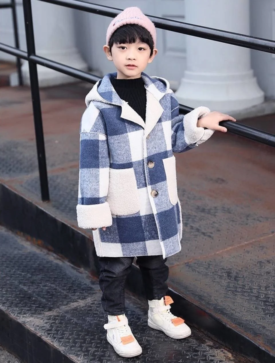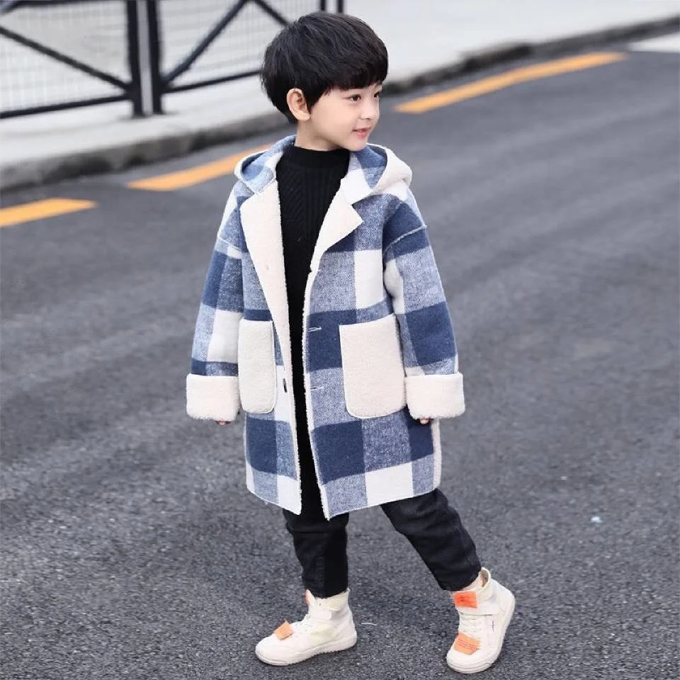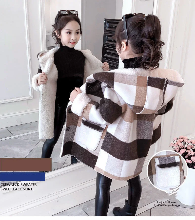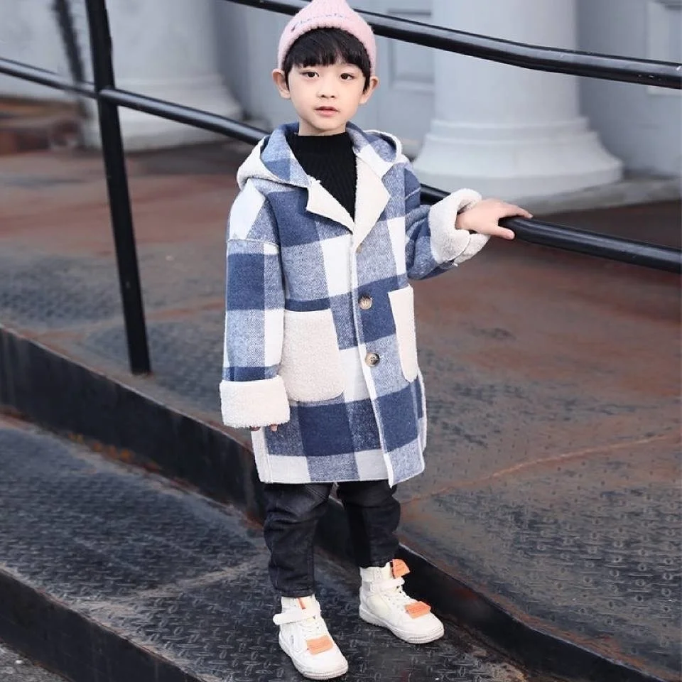 Осень-зима 2022, куртка с капюшоном для мальчиков, пальто для девочек, для детей ясельного возраста, с длинным рукавом, в клетку, повседневные топы, верхняя одежда, пальто, одежда