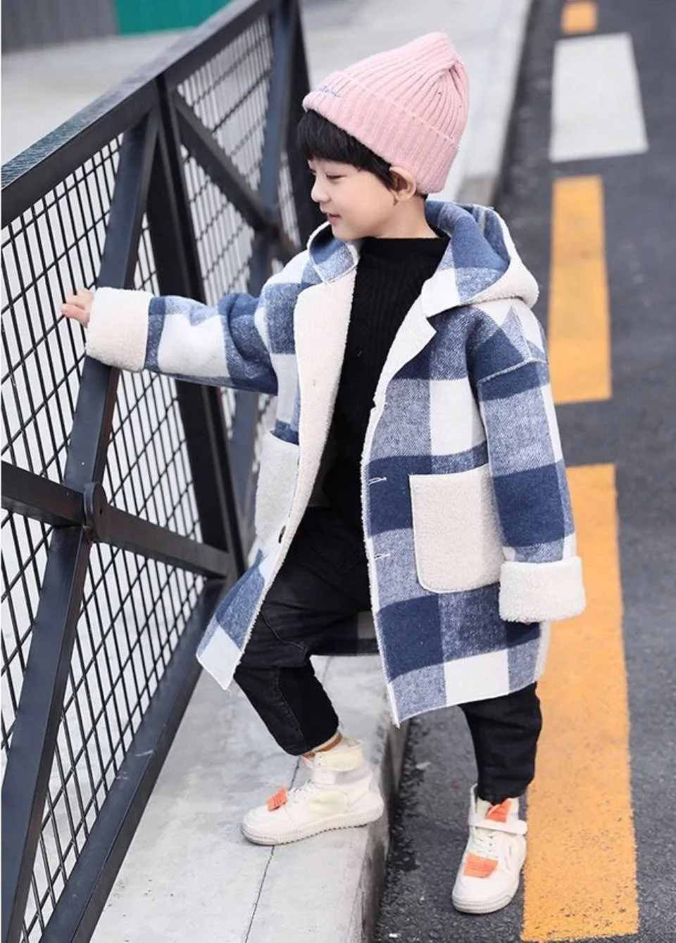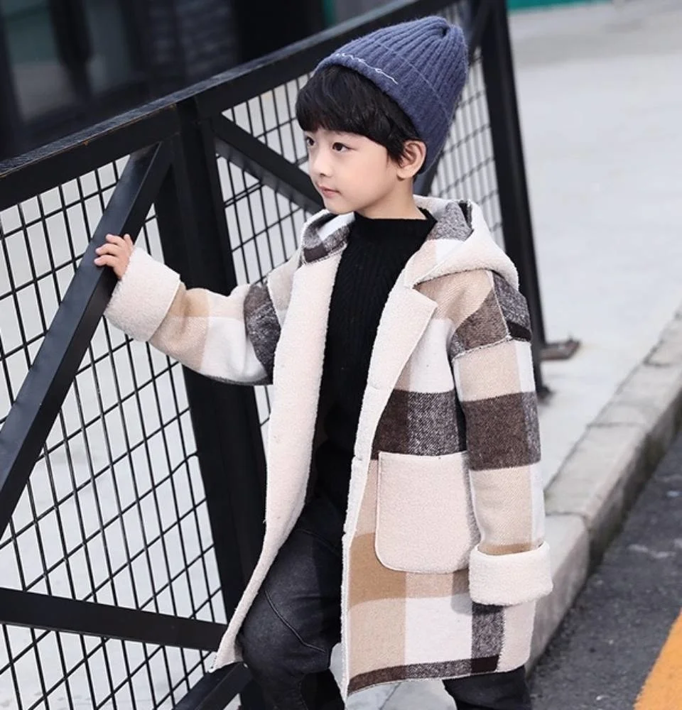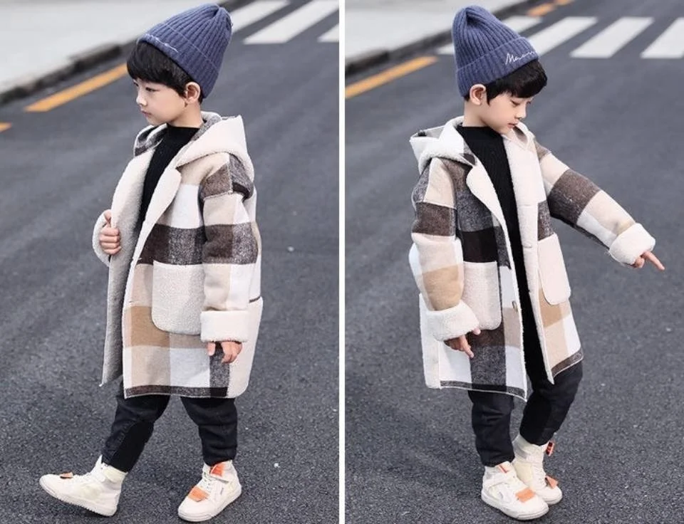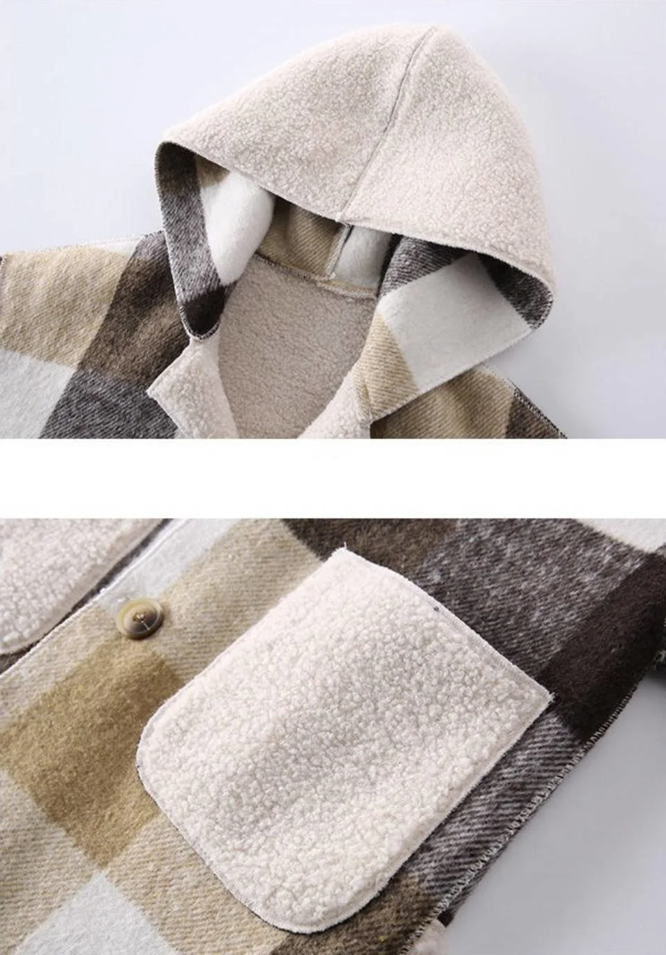 Осень-зима 2022, куртка с капюшоном для мальчиков, пальто для девочек, для детей ясельного возраста, с длинным рукавом, в клетку, повседневные топы, верхняя одежда, пальто, одежда