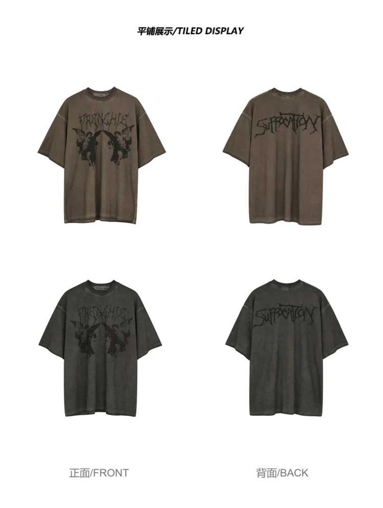 Женский топ с короткими рукавами, модель футболка с изображением ангела, в европейском и американском стиле y2k, темный, большого размера, 2021