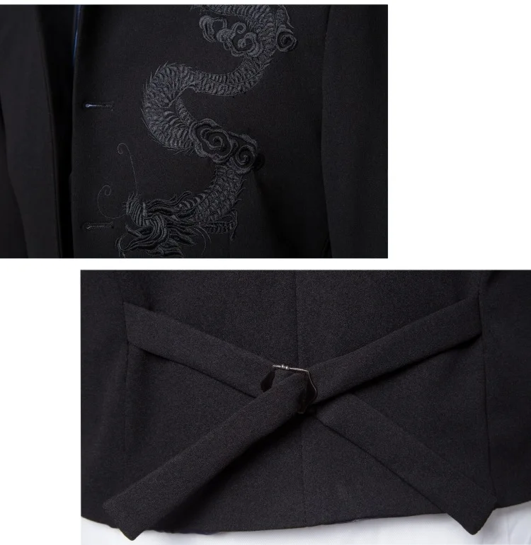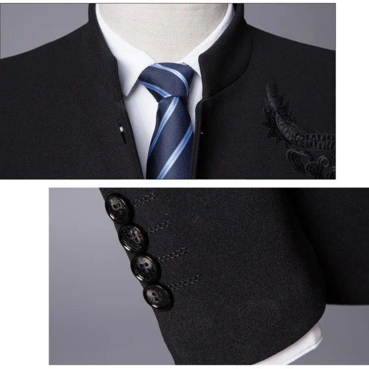 Мужской свадебный костюм-тройка в китайском стиле, жилет, модный дизайн, мужской костюм с вышивкой, облегающее платье Мао Цзэдун с драконом