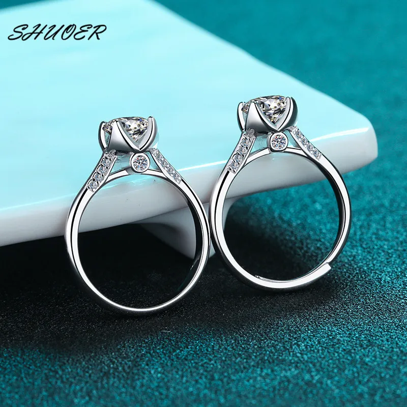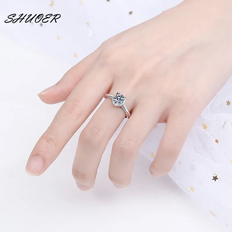 Женское классическое кольцо из серебра 925 пробы с бриллиантом, с муассанитом 1 карат
