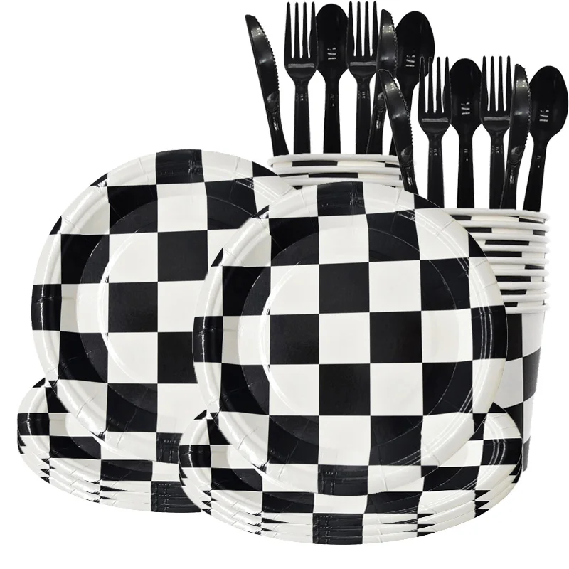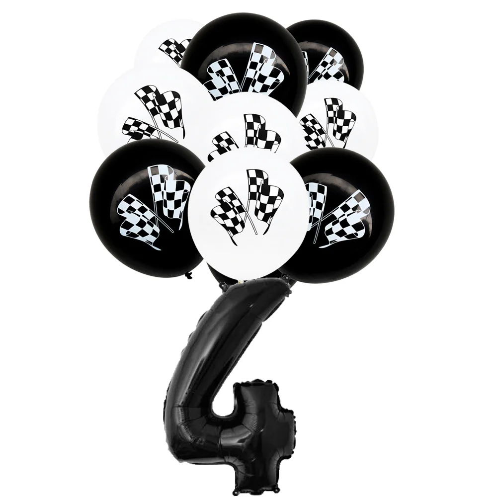 Тарелки с флагом в черно-белую клетку для гонок на день рождения, набор воздушных шаров с цифрами салфетки для стаканчиков, мешочки, Гоночная машина для мальчика, домашний декор