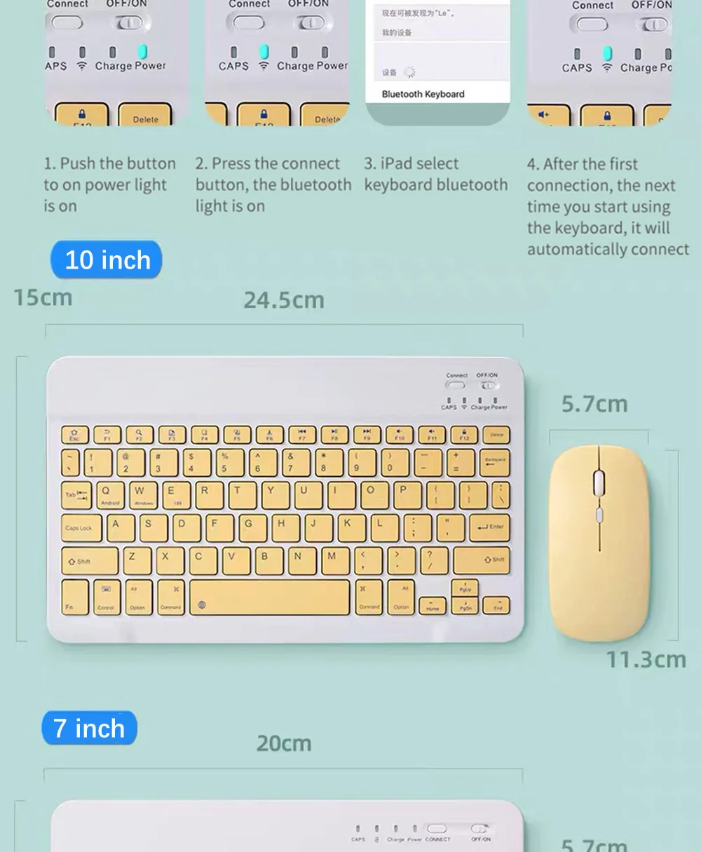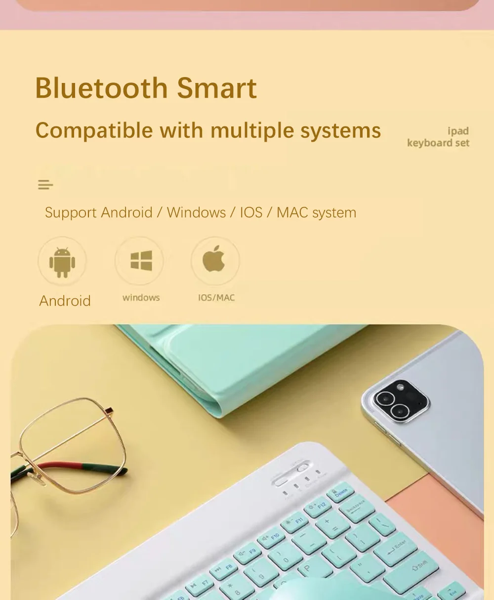 1. Широкая совместимость:Используется со всеми четырьмя основными операционными системами, поддерживающими Bluetooth (iOS, Android, Mac OS и Windows) , совместим с iPad, iPhone и планшетами с поддержкой Bluetooth, ноутбуками и мобильными телефонами, такие как iPad air , iPad mini, iPad Pro, iPhone Xs Max и т. Д.2. Ультратонкий, легкий и портативный:Эта легкая bluetooth-клавиатура предназначена для тех, кому нужна портативная клавиатура, способная работать или играть, и особенно подходит для деловых поездок.3. Перезаряжаемый и автоматический режим сна:Универсальная беспроводная bluetooth-клавиатура использует встроенный литиевый аккумулятор, его можно легко заряжать через usb-кабель, не нужно менять аккумулятор. Встроенная перезаряжаемая батарея невероятно долговечна, время работы в режиме ожидания составляет около 6 месяцев между зарядами. Беспроводная клавиатура bluetooth может автоматически войти в режим сна для экономии энергии.4. Стабильное соединение:Передовая технология Bluetooth обеспечивает соединение без кабеля с рабочим диапазоном 10 метров. Но для настольного ПК-ноутбука без функции bluetooth, вам необходимо вставить сторонний вечерние bluetooth-адаптер (не входит в комплект) для установки драйвера bluetooth перед использованием.5. Удобный и тихий ввод текста:Бесшумные низкопрофильные клавиши обеспечивают совершенно новый уровень комфорта на кончиках ваших пальцев. Кроме того, храните все ваши наиболее часто используемые функции и средства массовой информации ближе, чем когда-либо, выделенные Windows горячие клавиши.Язык лазерной гравировки