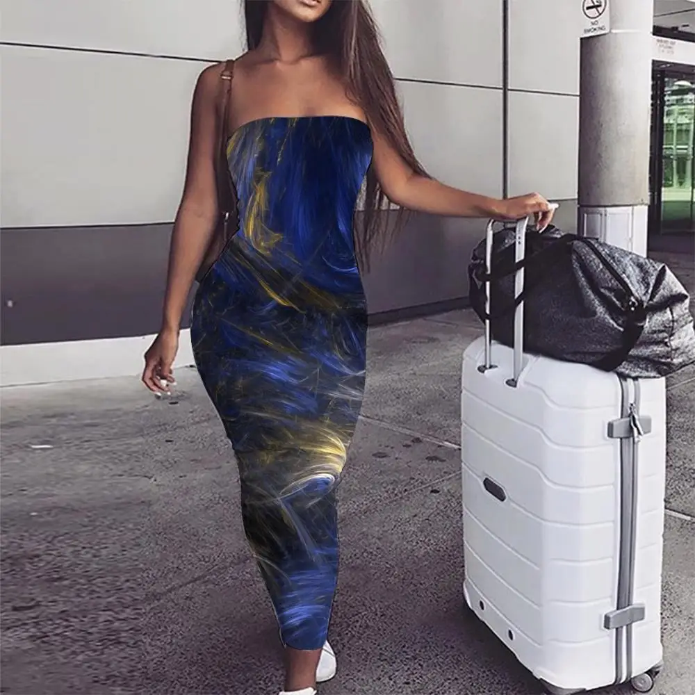 Черта: KYKU сексуальное платье макси без бретелек с открытыми плечами без рукавов прямое длинное облегающее платье с открытой спиной повседневное летнее вечернее платье для женщин