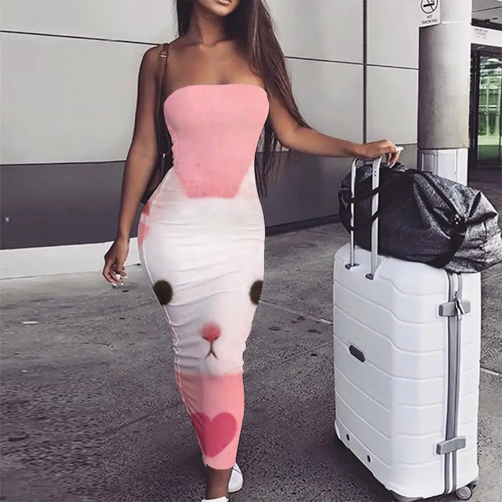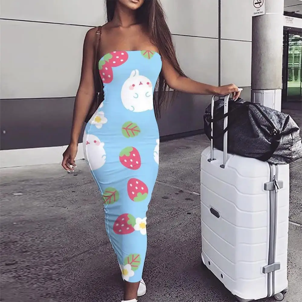 Платье клубничное KYKU, женское облегающее платье без рукавов, с ри...