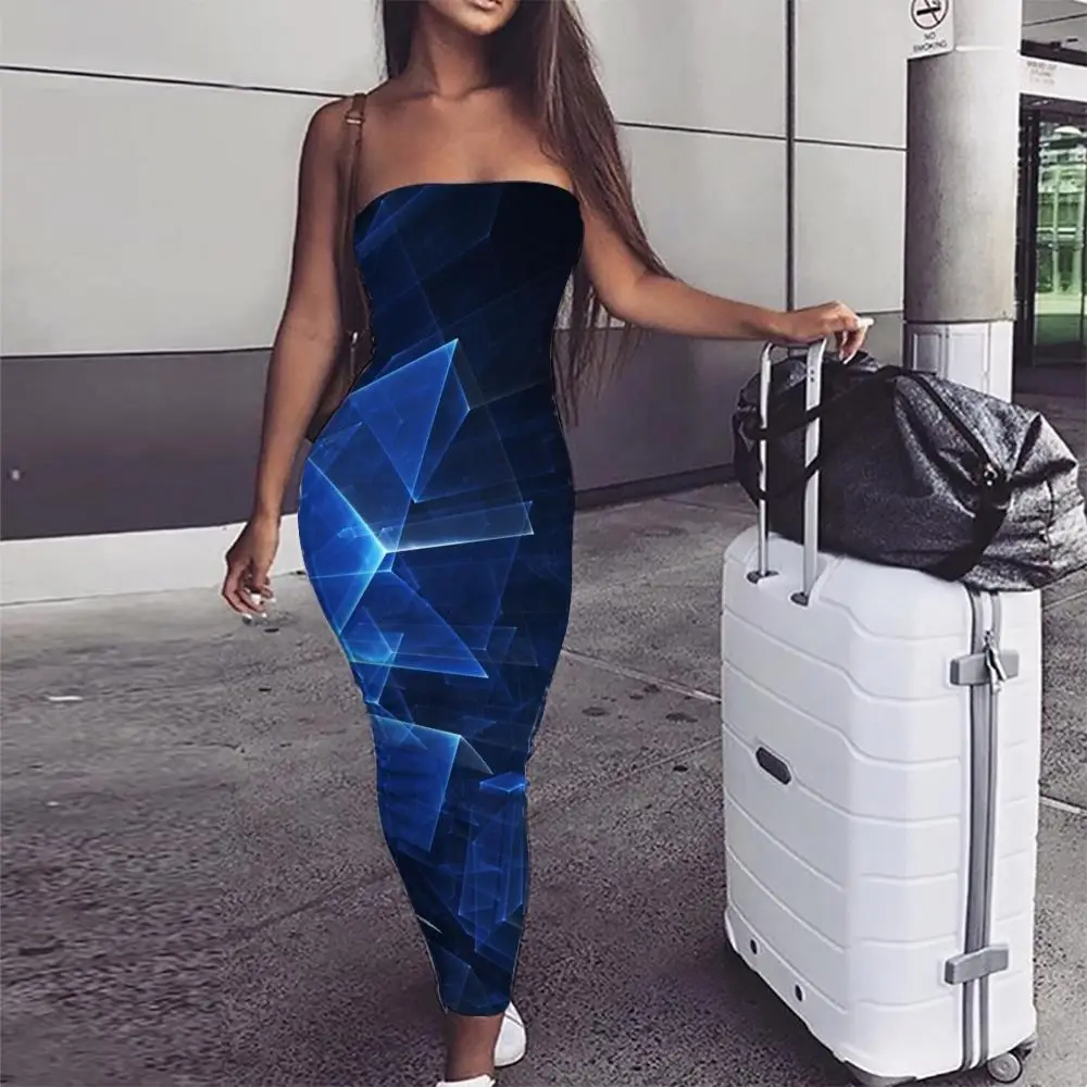 Женское облегающее платье с 3d принтом KYKU, синее облегающее плать...