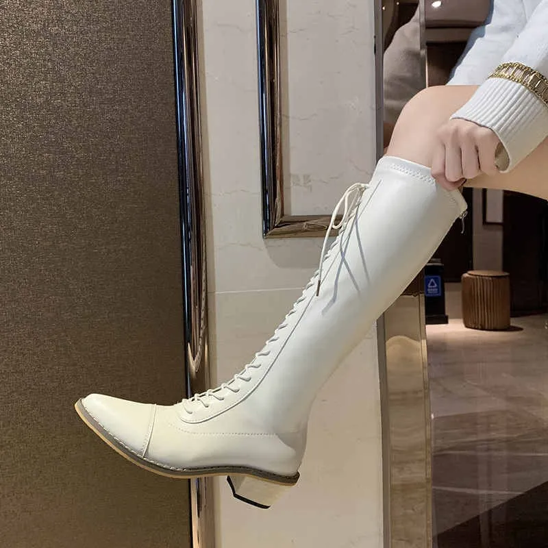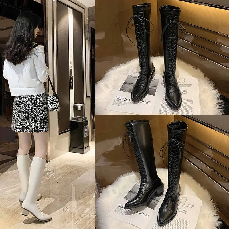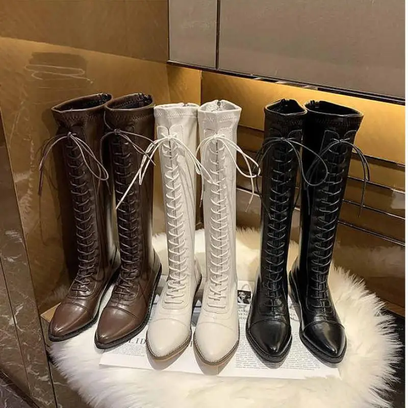 Новинка 2022, Женские однотонные сапоги до колена на шнуровке, женс...