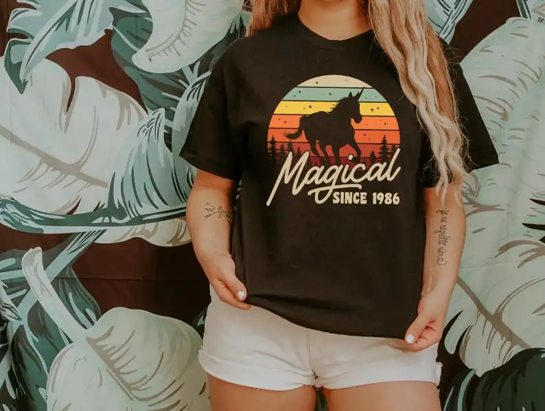 Винтажная рубашка 34th для дня рождения, волшебная с 1986 года, подарок на день рождения 34th, женская футболка для празднования дня рождения, летняя повседневная футболка