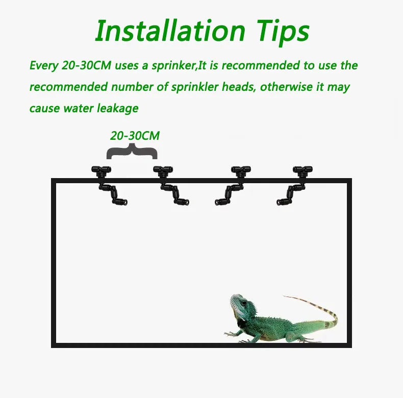 Каждый шарнир может вращаться на 360 градусов, что упрощает использование.360 Регулируемый универсальный шарнир с насадками может образовывать тонкий туман. Их легко установить в верхней части террариума.Маленький размер, Скрытая установка, визуальные препятствия, не влияют на красоту пейзажа.Насадки изготовлены из прочной латуни и нержавеющей сталиГерметичное, само-уплотнительное кольцо в комплекте с каждым соплом
